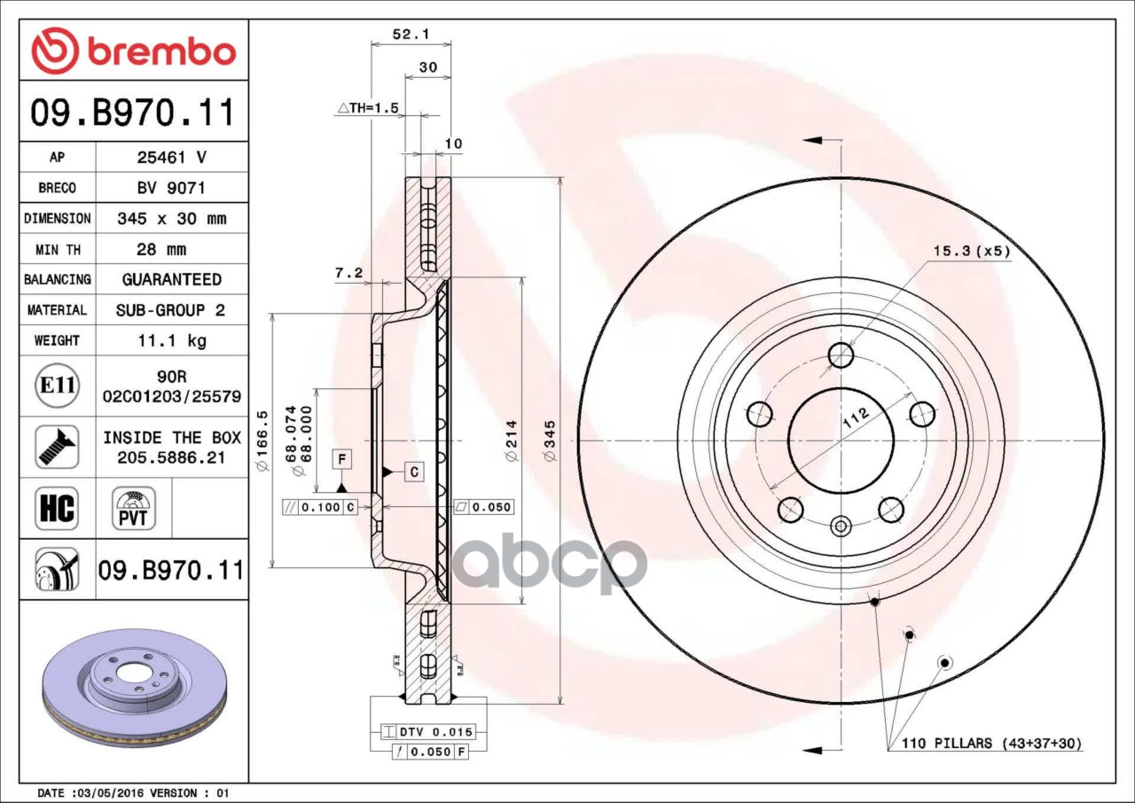 Купить запчасть 09B97011 Диск тормозной 09.B970.11 с доставкой по России.