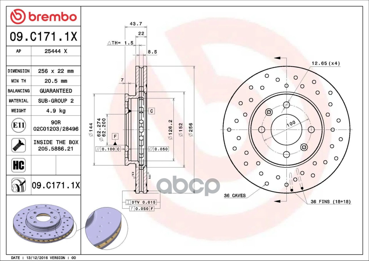 Купить запчасть 09C1711X Диск торм. пер.вент. Xtra 256x22mm 4 отв с доставкой по России.