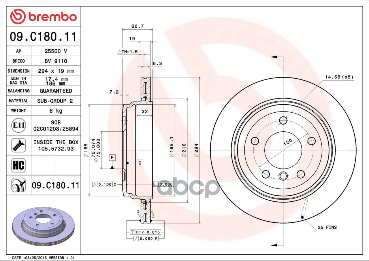 Купить запчасть 09C18011 Диск торм. зад.вент.[294x19] 5 отв. min2 BMW (E46) 2,5 Xi/Touring 09/00-02/05 с доставкой по России.