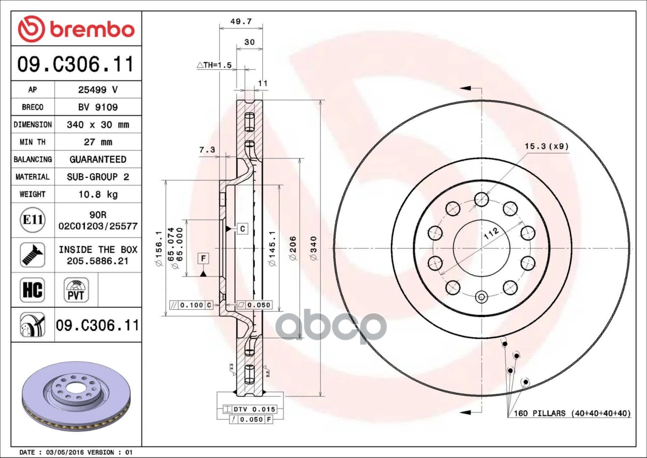 Купить запчасть 09C30611 Тормозной диск с доставкой по России.