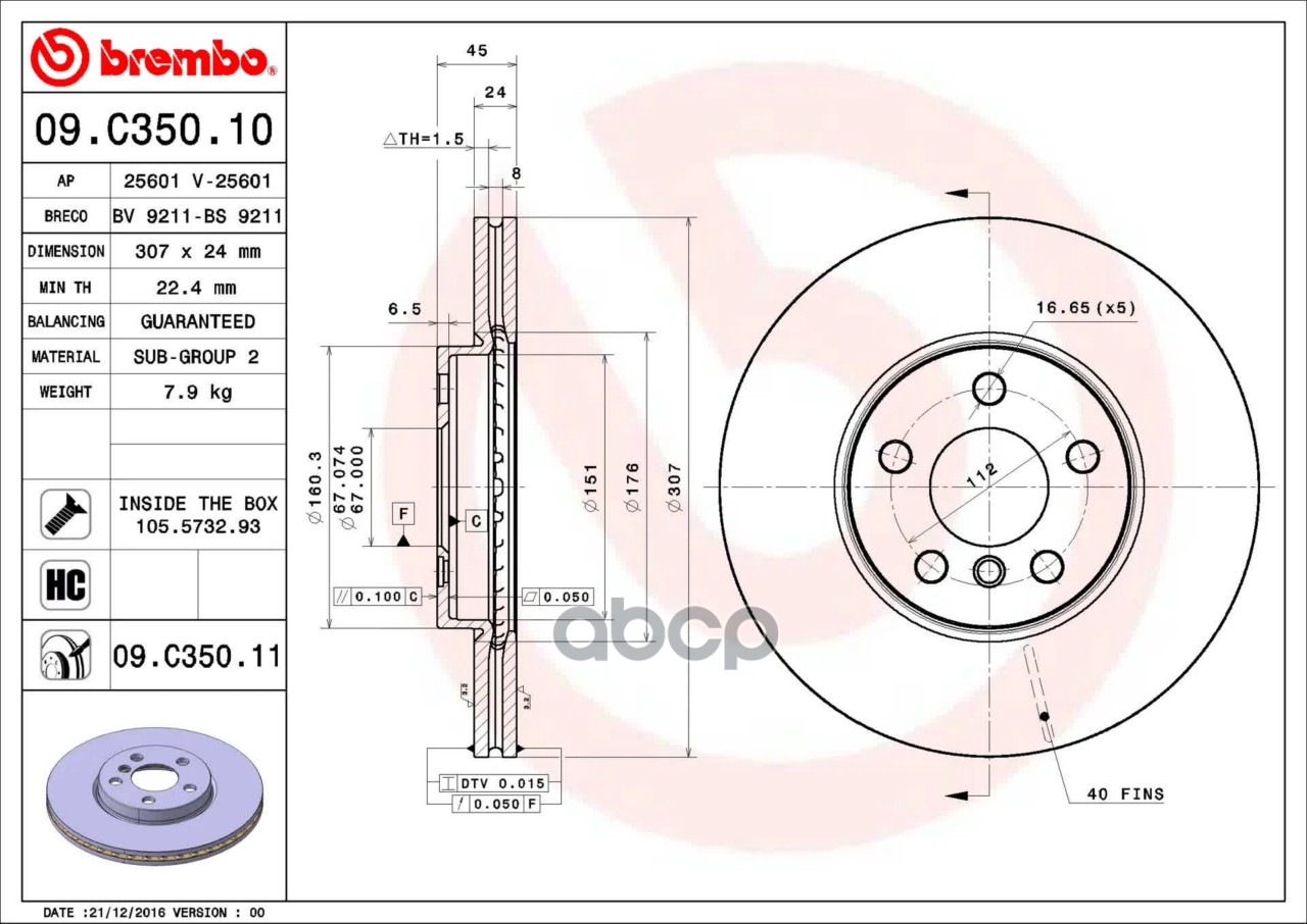 Купить запчасть 09C35011 Диск тормозной передний вент. D=307мм с доставкой по России.