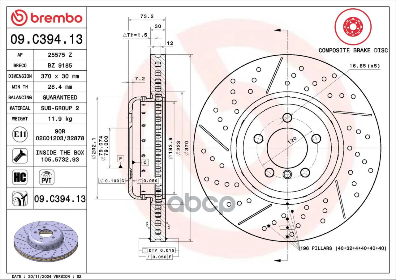 Купить запчасть 09C39413 Тормозной диск композитный с доставкой по России.