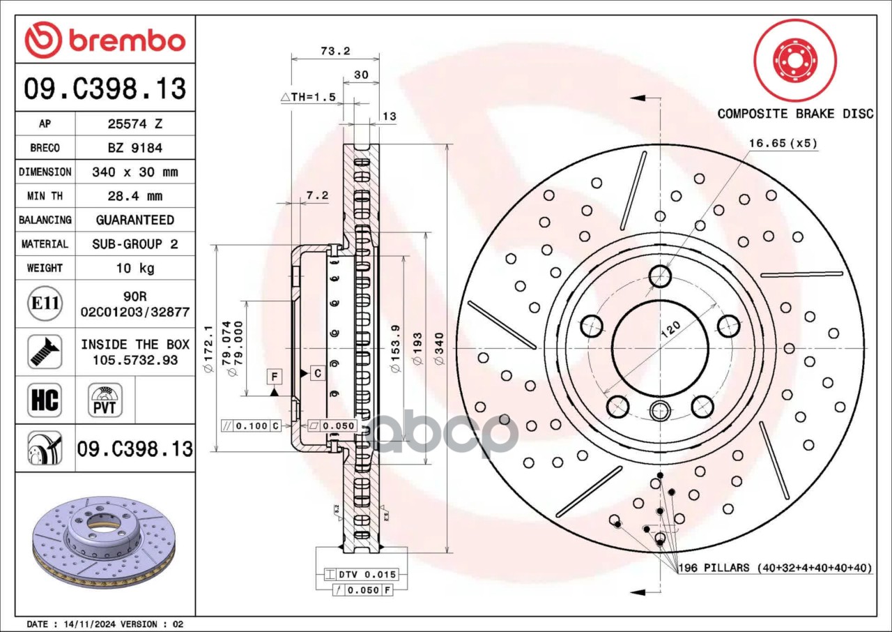 Купить запчасть 09C39813 Диск торм.пер. вент. [340x30] 5 отв. BMW 1/ 2/ 3/ 4 (F20/F21/F22/F30/F31/F/F34/F35/F80) 12.10-> с доставкой по России.