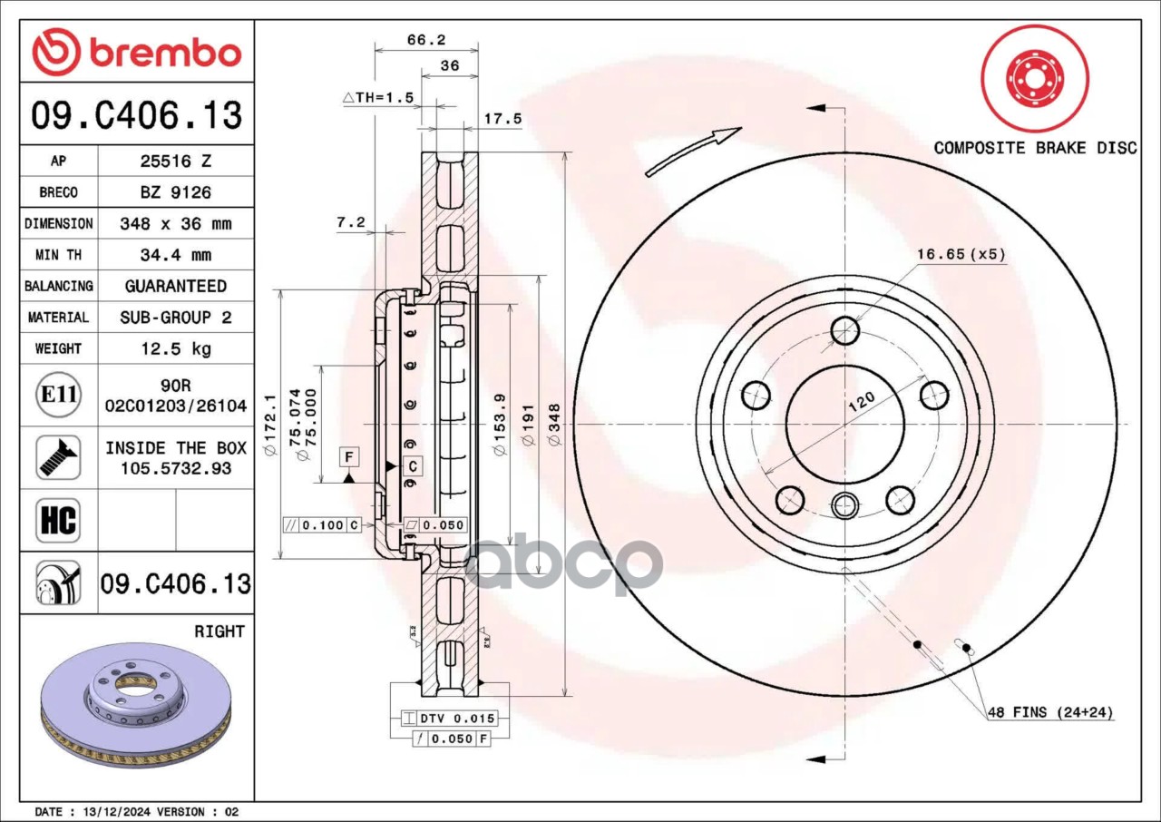 Купить запчасть 09C40613 Диск торм. пер.вент R [348x36] 5 отв. BMW 5/6/7 (F10/F11/F12) 10.08-> с доставкой по России.