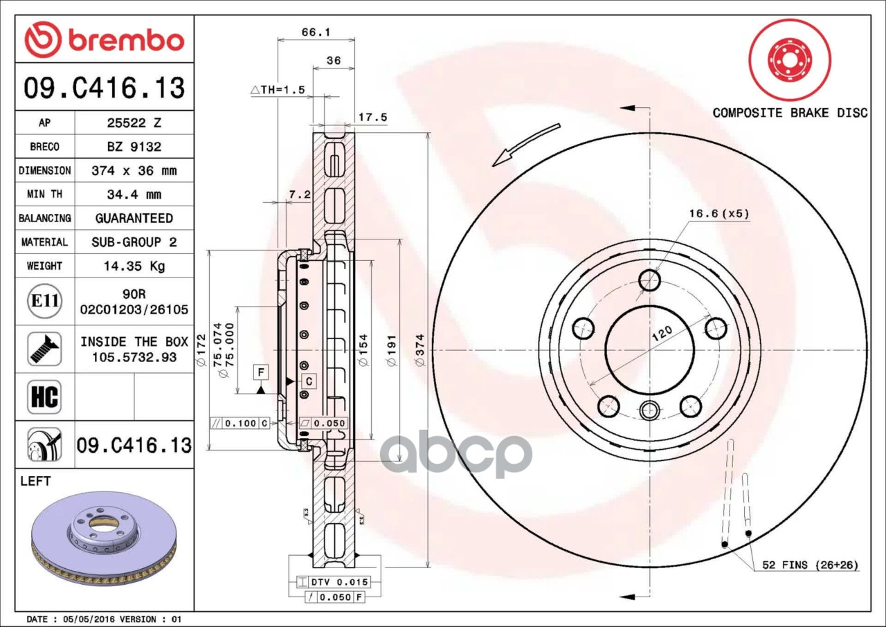 Купить запчасть 09C41613 ДИСК ТОРМ. FR L BMW 5 GRAN TURISMOF07, 7F01 с доставкой по России.