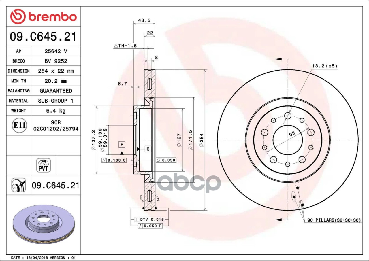 Купить запчасть 09C64521 Тормозной диск с доставкой по России.