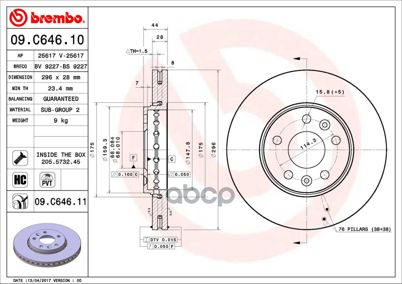 Купить запчасть 09C64611 Тормозной диск с доставкой по России.