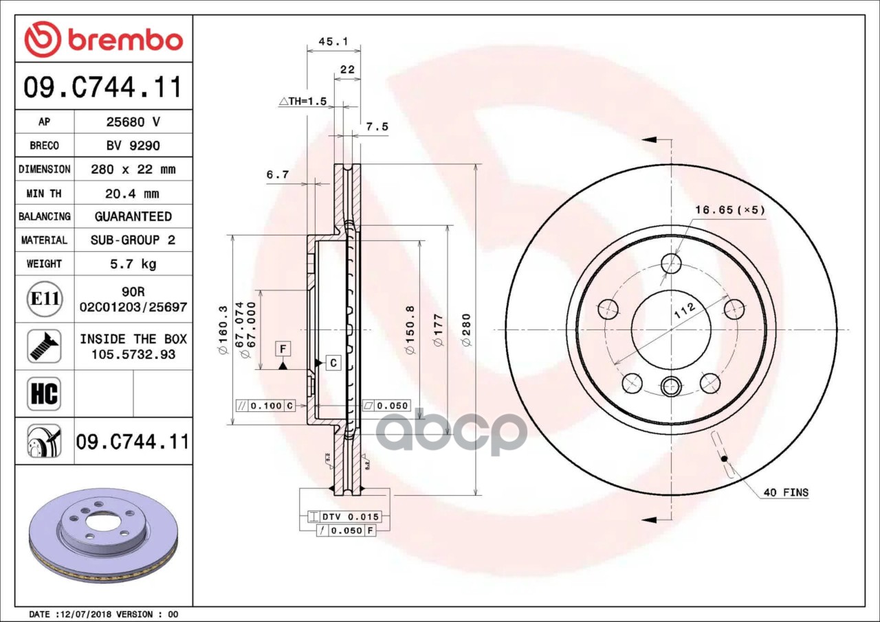 Купить запчасть 09C74411 Диск тормозной UV Coated с доставкой по России.