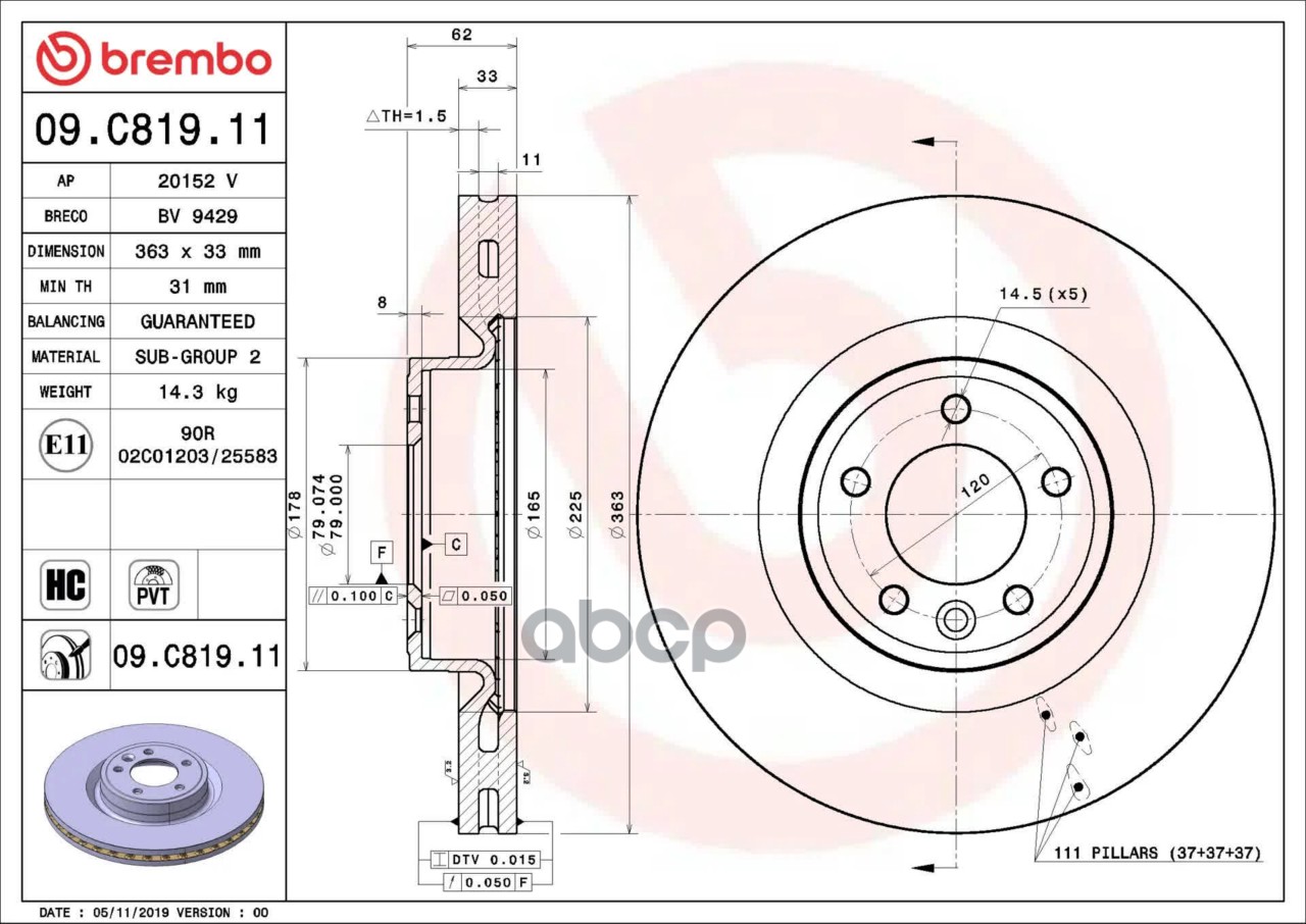 Купить запчасть 09C81911 Диск тормозной передний LAND ROVER DISCOVERY V (L462) 09/16-> / LAND ROVER DISCO с доставкой по России.