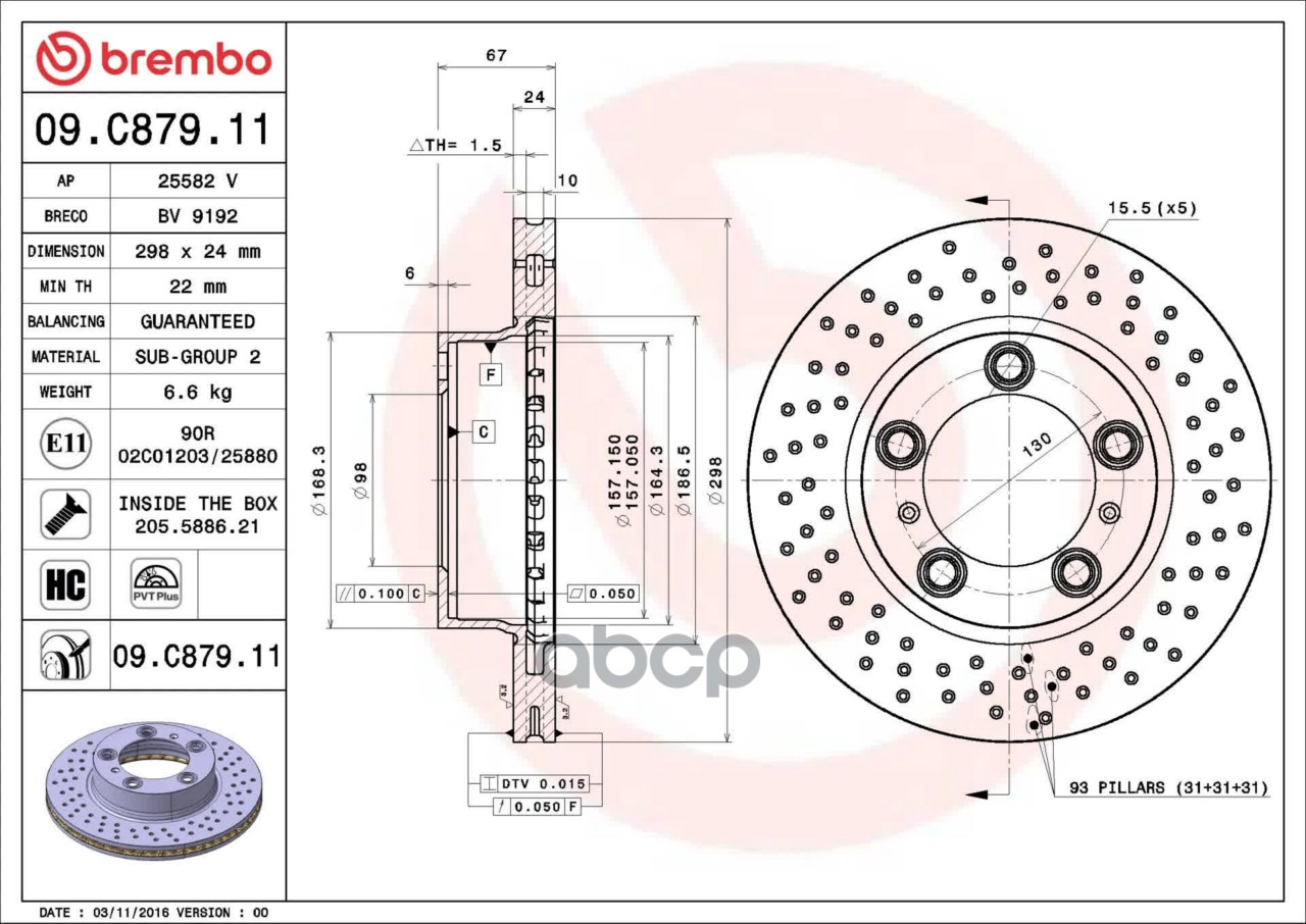 Купить запчасть 09C87911 Диск тормозной передний перф. Poesche BoxterCayman 2.7 04 d298 с доставкой по России.