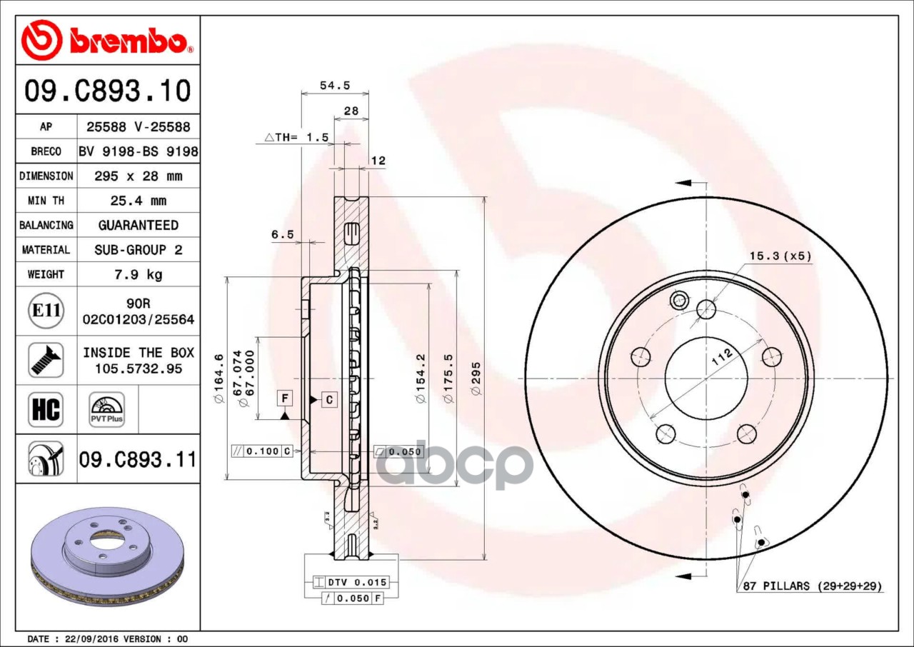 Купить запчасть 09C89311 Диск тормозной BREMBO с доставкой по России.