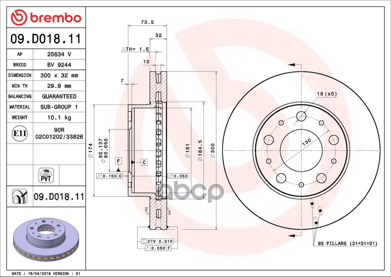Купить запчасть 09D01811 Диск торм. пер.[300x32] 5 отв. CITROEN Jumper 2.2HDi/3.0HDi 04/06->/ PEUGEOT Boxer 2.2HDi/3.0HDi 04/06->/ FIAT Ducato 2.2D/2.3D 07/06-> с доставкой по России.
