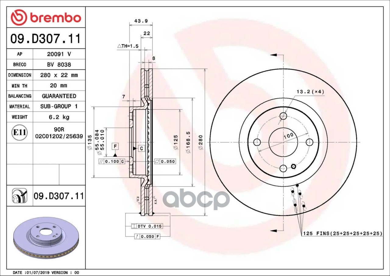 Купить запчасть 09D30711 Диск тормозной с доставкой по России.