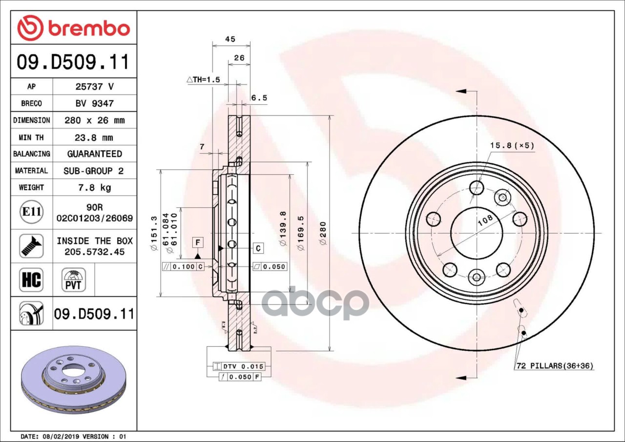 Купить запчасть 09D50911 Тормозной диск с доставкой по России.