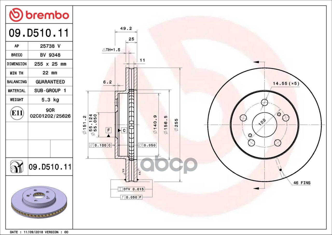 Купить запчасть 09D51011 Диск тормозной передний с доставкой по России.