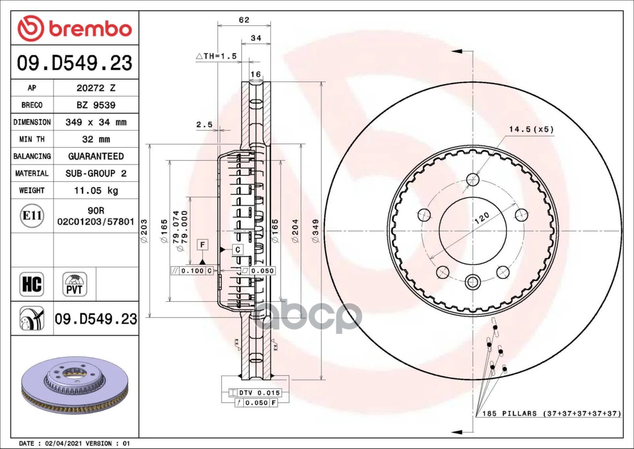 Бренд: Brembo, артикул: 09D54923, Тормозной диск 09.D549.23. |