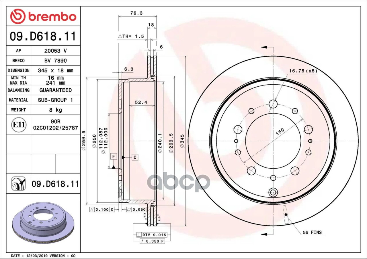 Наименование: Тормозной диск BREMBO