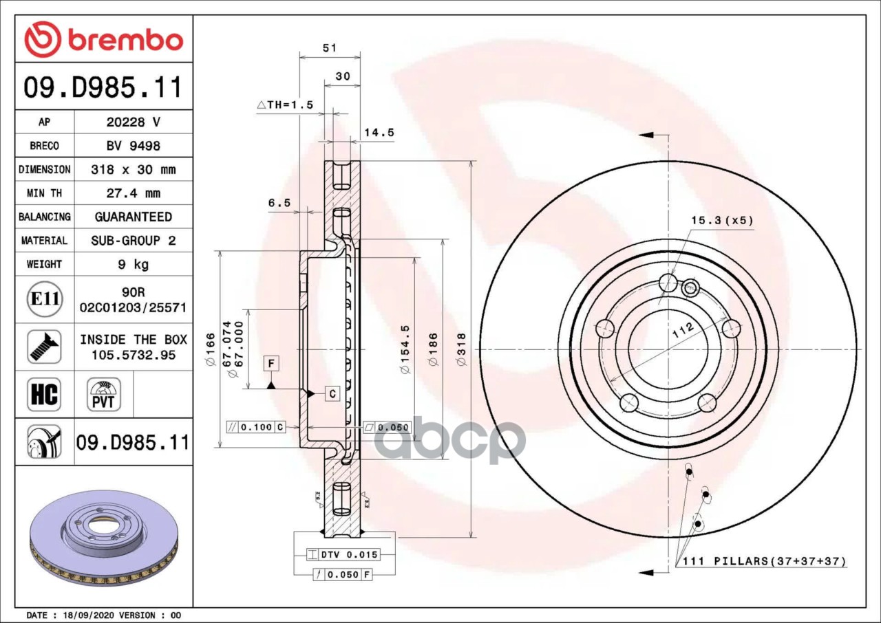 Купить запчасть 09D98511 Тормозной диск с доставкой по России.