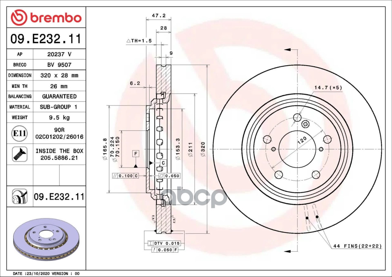 Купить запчасть 09E23211 09E23211 BREMBO Диск тормозной с доставкой по России.