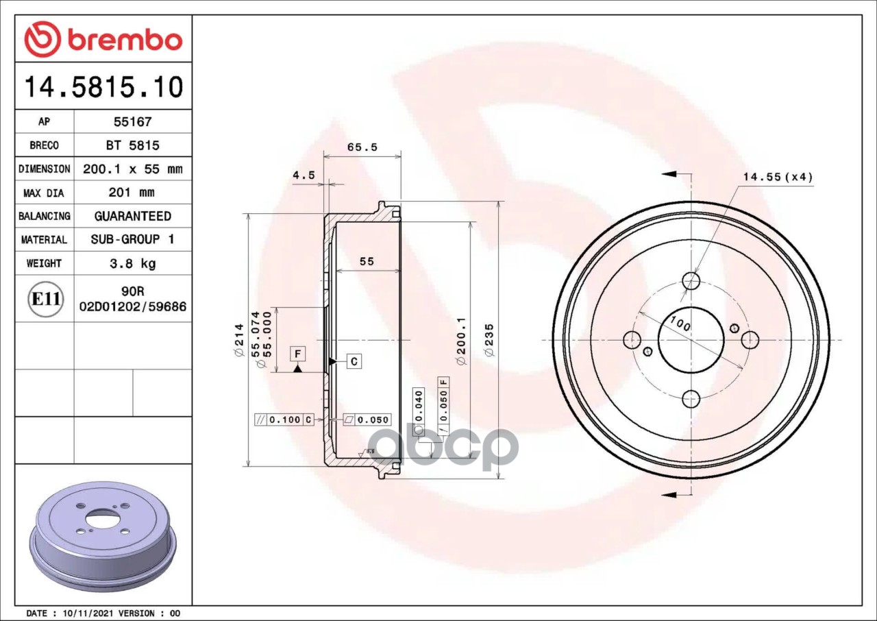 Барабан тормозной задний 14.5815.10 (200,2x65,5) 4 отв