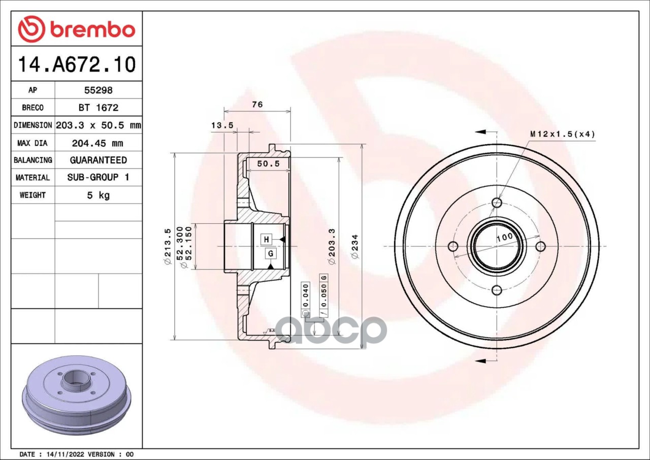 Барабан торм. зад [203x76] 4 отв NISSAN MICRA/NOTE 1.0-1.6 01.03->