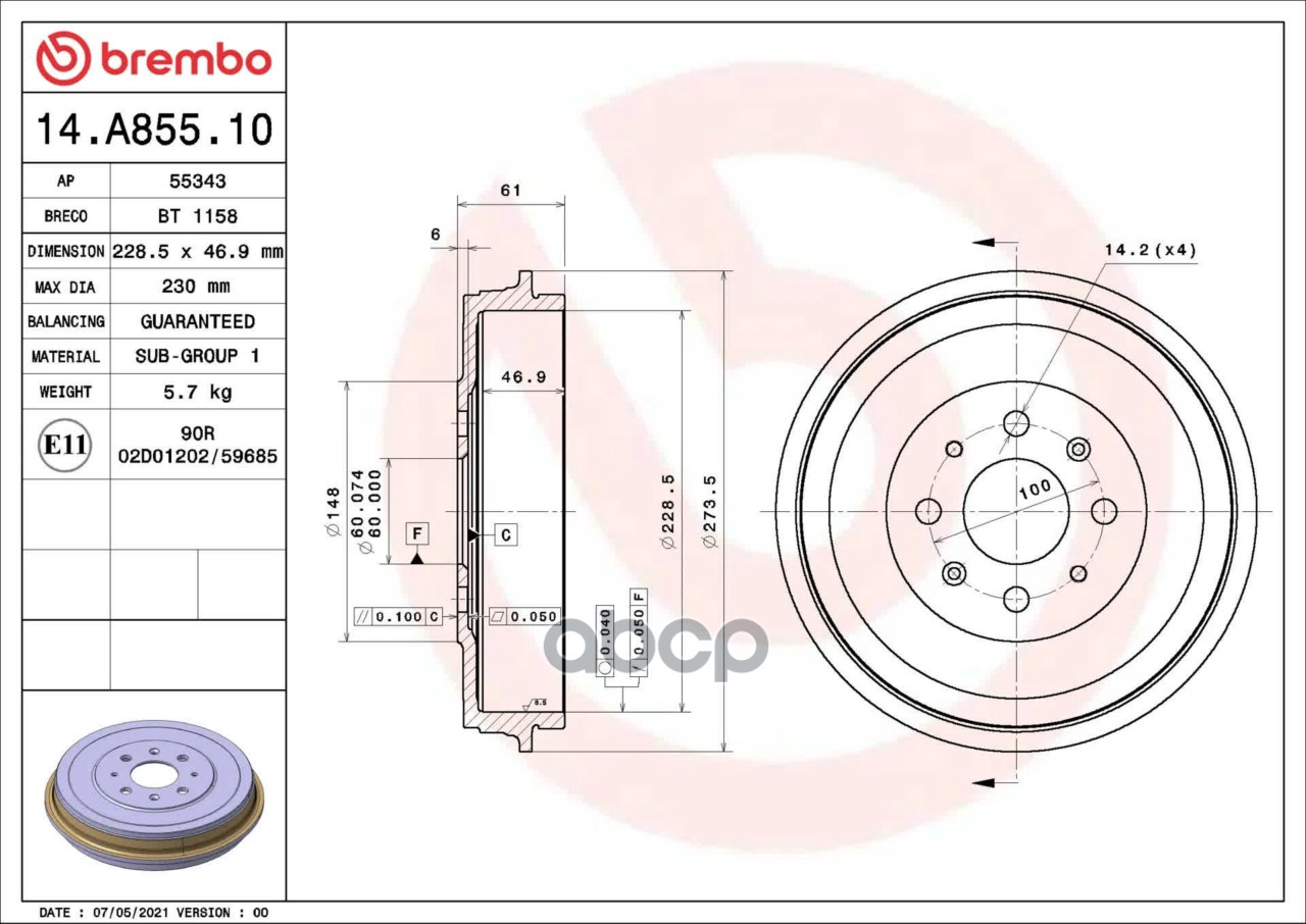 Купить запчасть 14A85510 Тормозной барабан с доставкой по России.