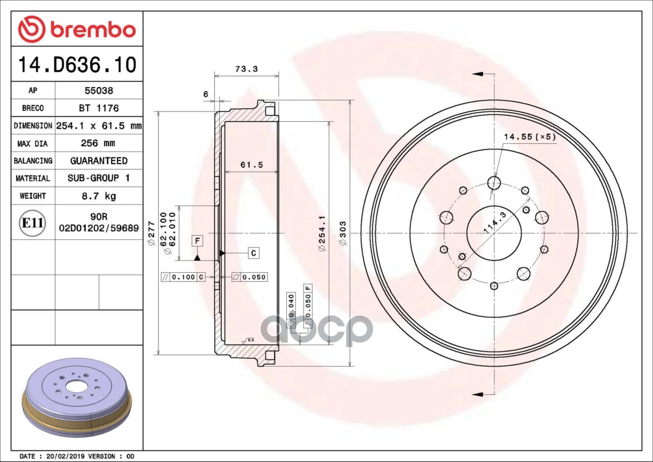 Барабан тормозной 14.D636.10