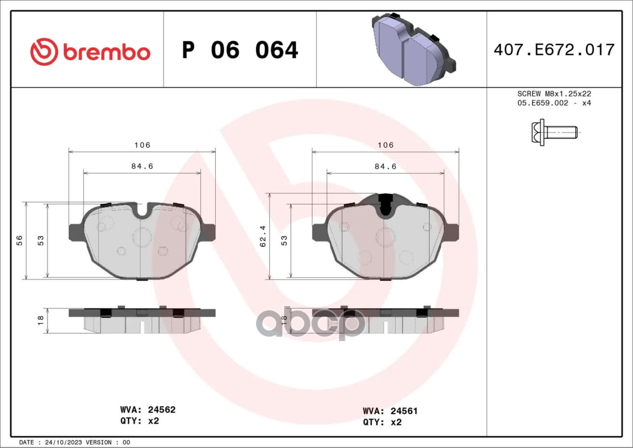 Купить запчасть P06064 Колодки тормозные RR BMW 5 F10 с доставкой по России.
