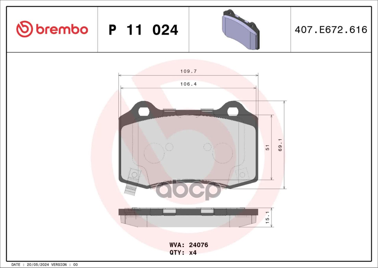 Купить запчасть P11024 Комплект тормозных колодок, дисковый тормоз с доставкой по России.