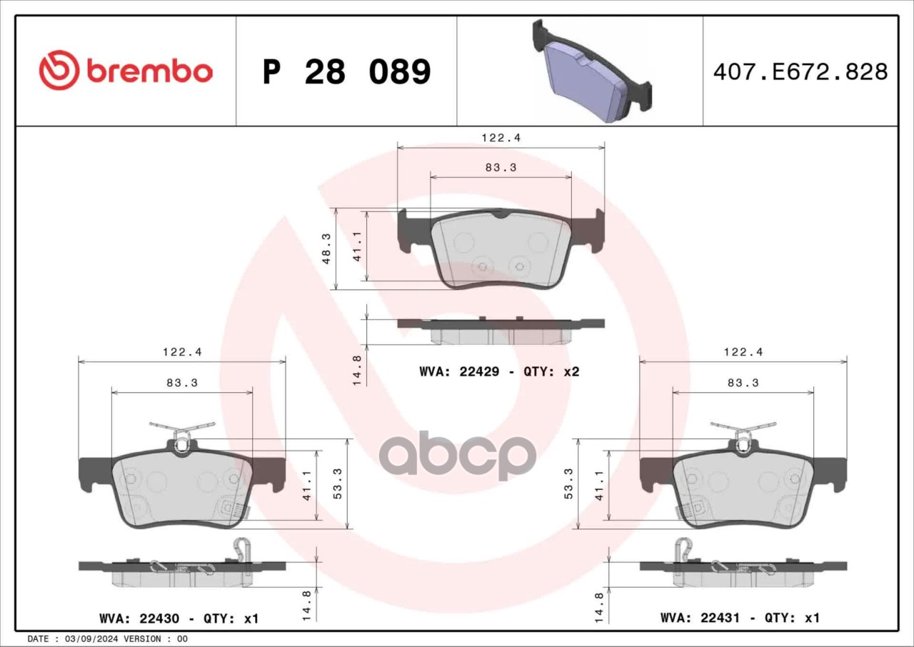 Купить запчасть P28089 Комплект тормозных колодок с доставкой по России.