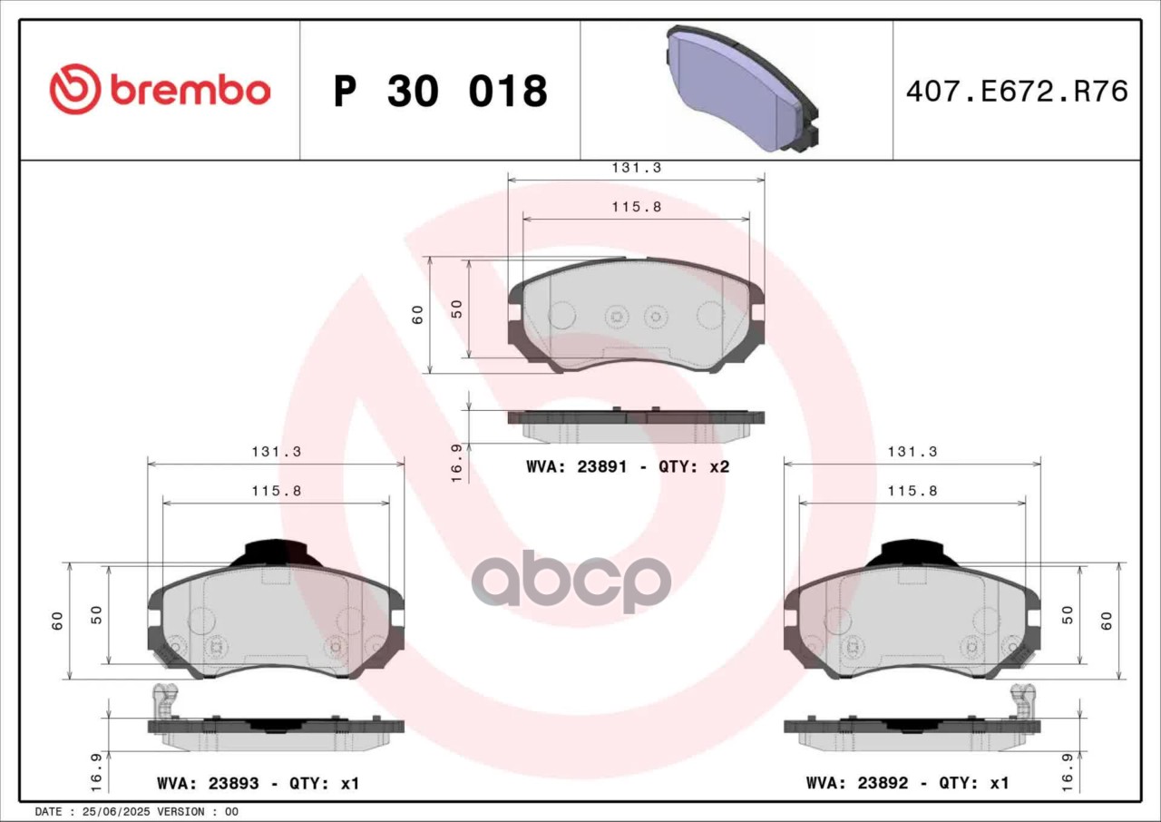 Купить запчасть P30018 Тормозные колодки с доставкой по России.