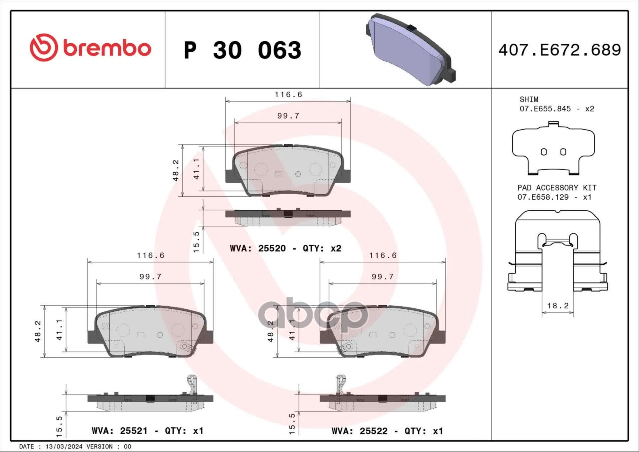 Купить запчасть P30063 Колодки тормозные дисковые с доставкой по России.