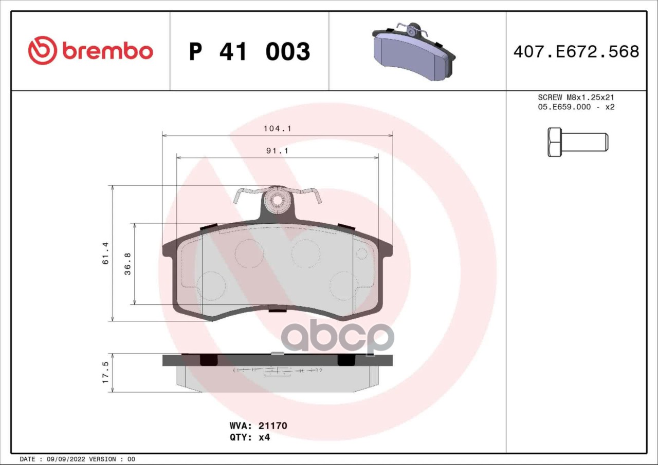 Бренд: Brembo, артикул: P41003, Колодки торм.пер. LADA 110 1.5 Kw 54 01/95 - > F / LADA 110 1.5 Kw 57 01/95 - > F / LADA 110 1.5 16V Kw 70 01/95 - > F / LADA 111 1.5 16V Kw 70 01/95 - > F / LADA 112 1.5 Kw 54 01/95 - > F / LADA 112 1.5 Kw 57 01/95 - > F / LADA 112 1.5 16V Kw 70 01/95 -. |