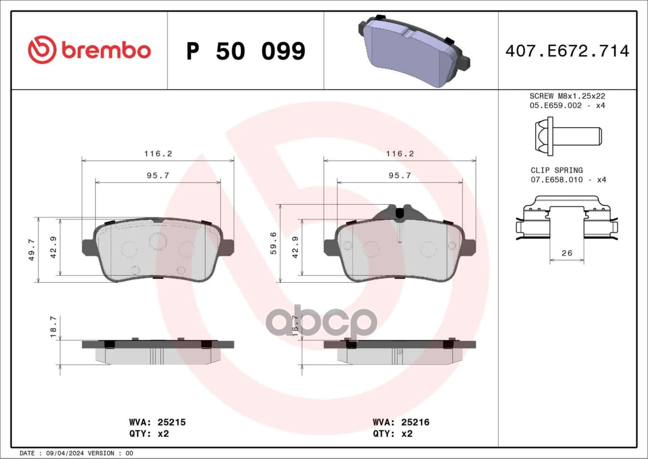 Купить запчасть P50099 Колодки тормозные дисковые с доставкой по России.