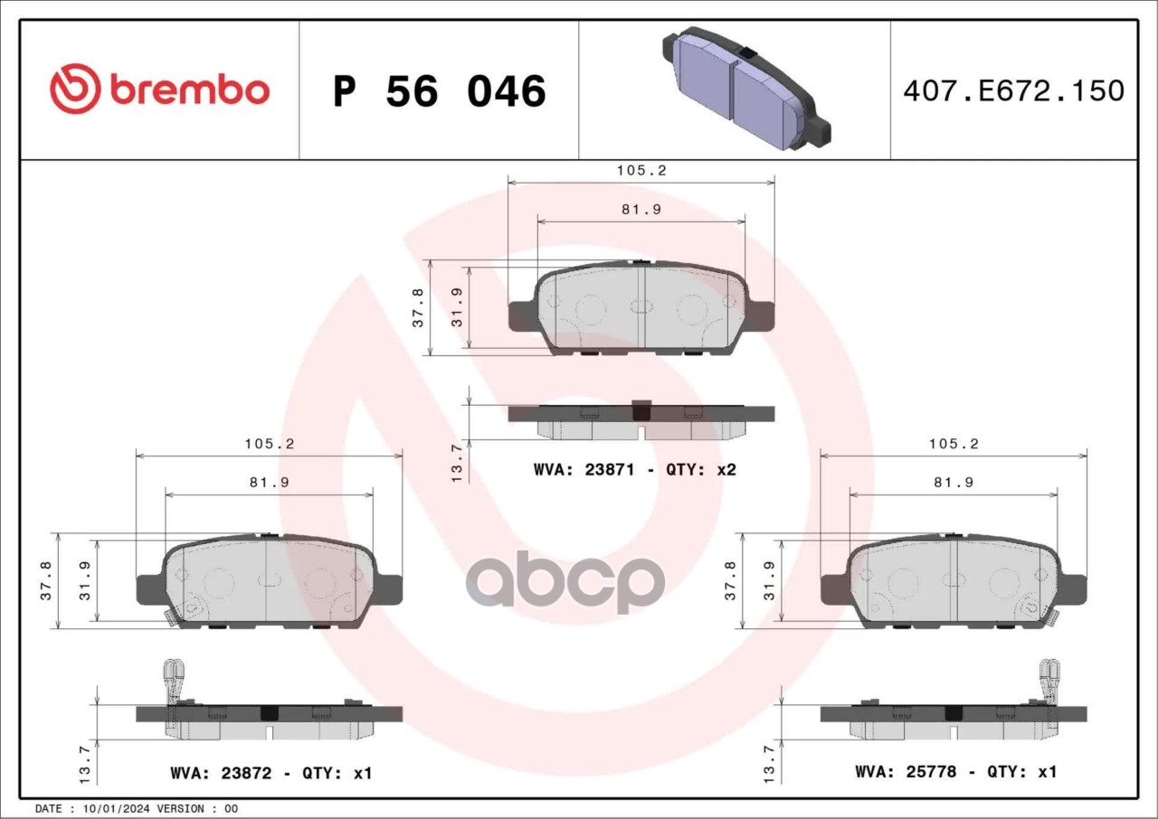Купить запчасть P56046 КОЛОДКИ ДИСКОВЫЕ с доставкой по России.