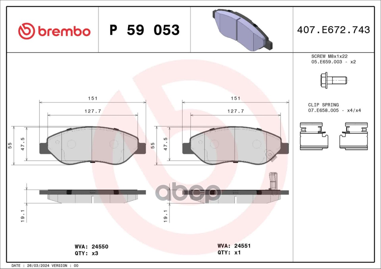 Купить запчасть P59053 Комплект тормозных колодок дисковый тормоз с доставкой по России.