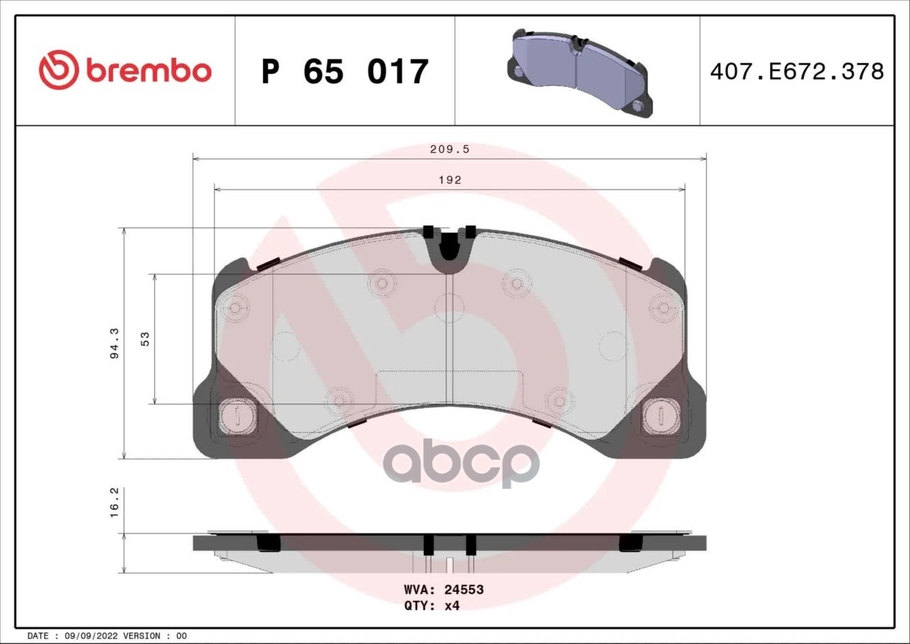 Наименование: BREMBO P65 017 Колодки тормозные передние