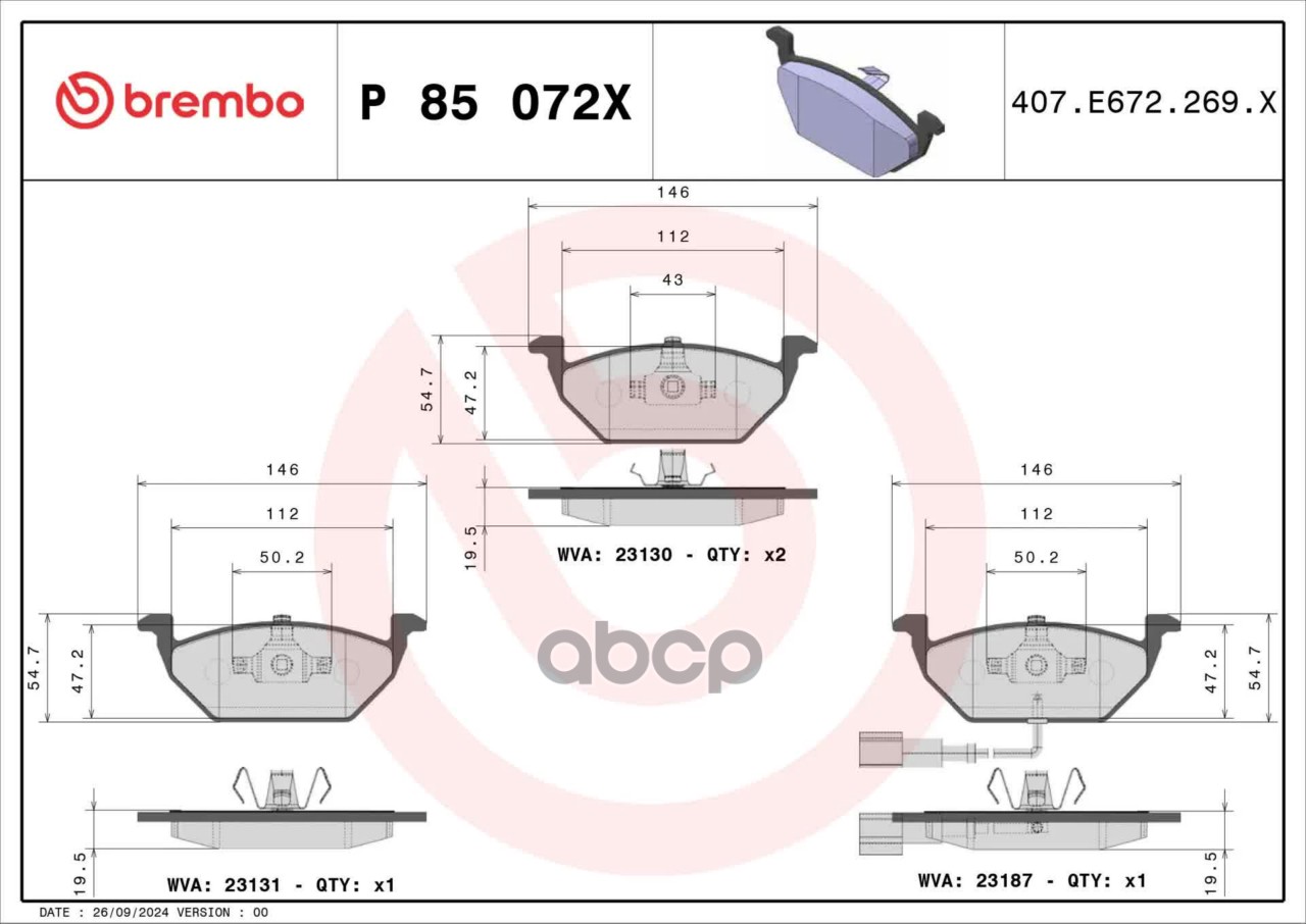 Наименование: P85072X колодки дисковые передние XTRA, с датчиком VW Golf IV,Skoda Octavia 1.4-1.9SD 99>