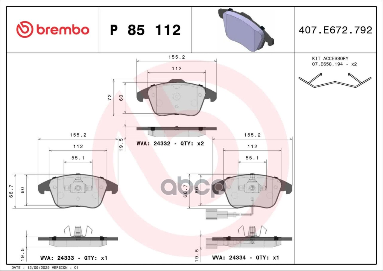 Купить запчасть P85112 Комплект тормозных колодок дисковый тормоз с доставкой по России.