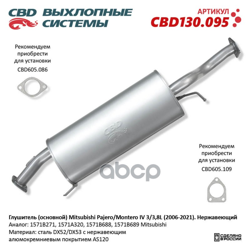 Глушитель основной для а/м ВАЗ 2180 нержавейка СВD Sport Style круглый !Устанавливать только совместно с CBD220.001!