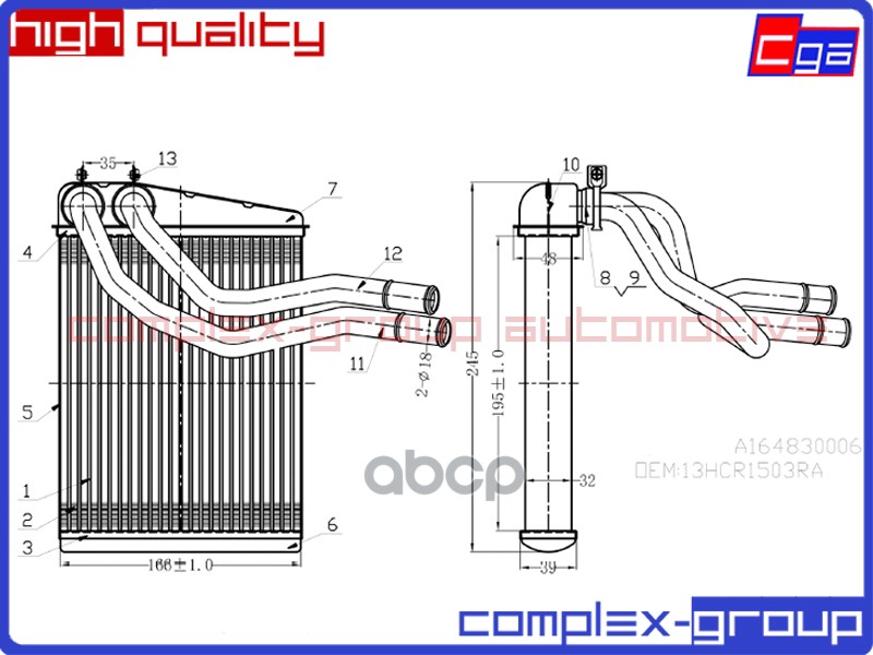 Купить запчасть 13HCR1503RA Радиатор отопителя A1648300061 с доставкой по России.