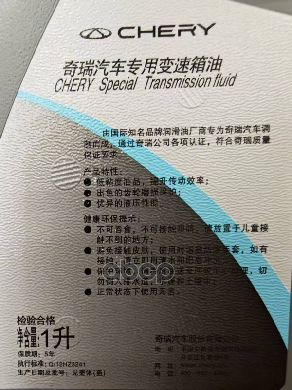 Бренд: CHERY, артикул: 123000081AA10, МАСЛО ТРАНСМИССИОННОЕ 8AT AW-1 1L. |