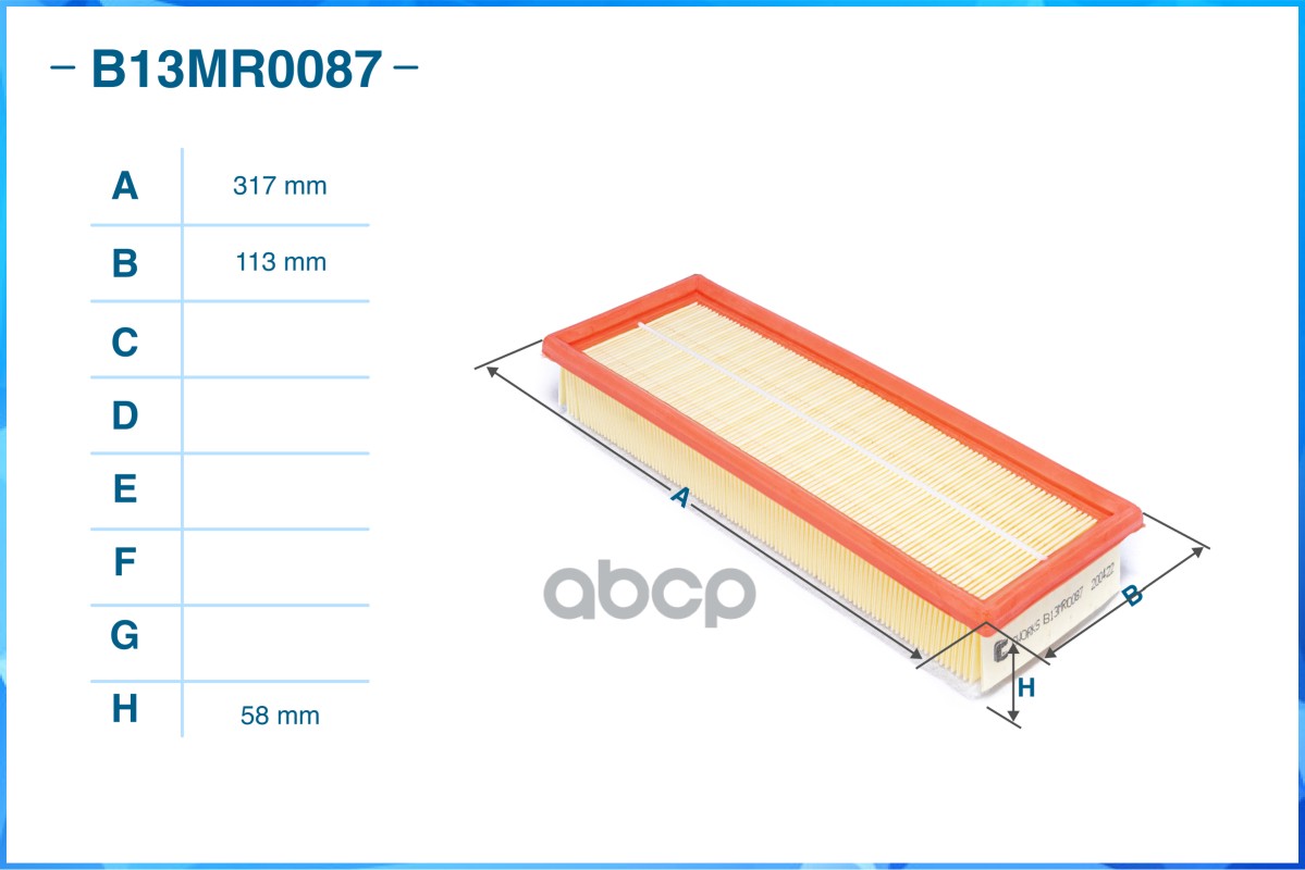 Купить запчасть B13MR0087 Фильтр воздушный с доставкой в Эль-Монте.