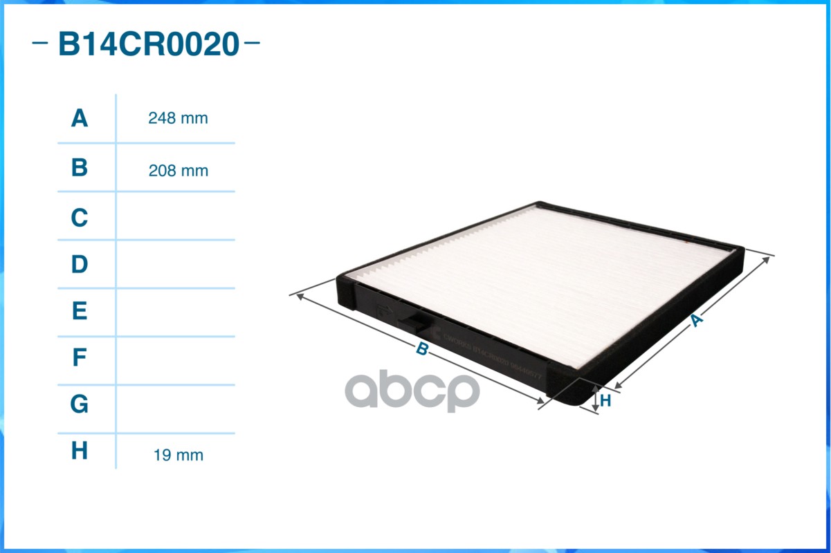 Наименование: Фильтр салонный пылевой B14CR0020