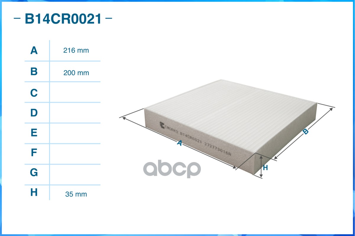 Фильтр салонный пылевой B14CR0021