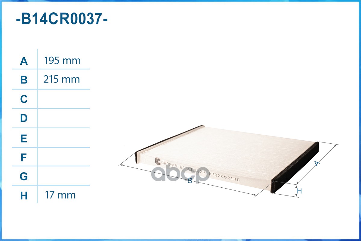 Фильтр салонный пылевой B14CR0037
