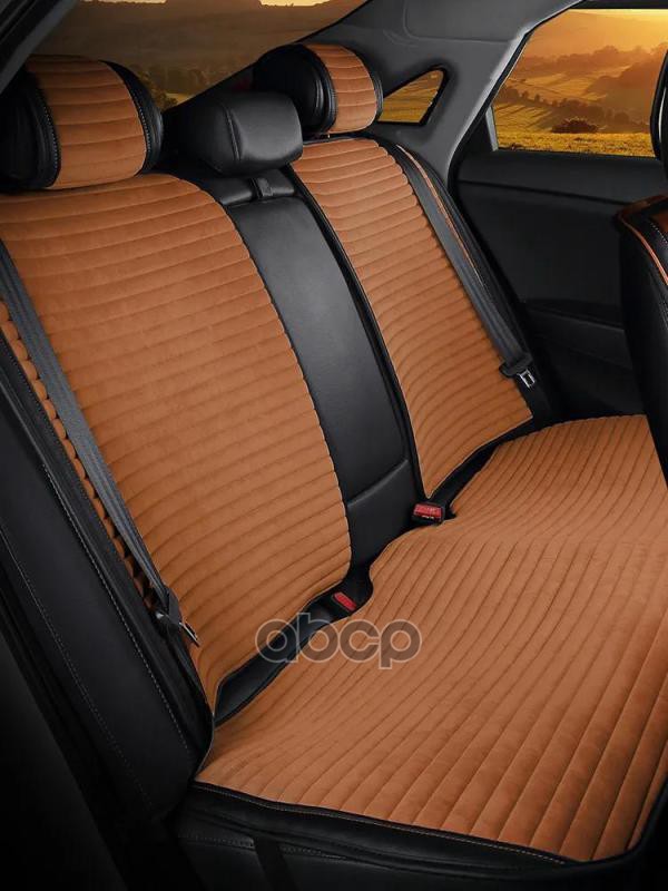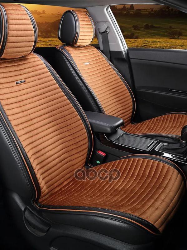 Накидка на сиденье CarFashion Monaco Plus комплект велюр/экокожа черная/коричневая/коричневая 21830