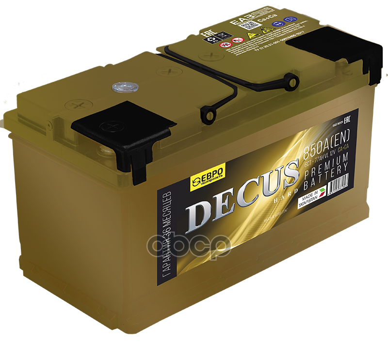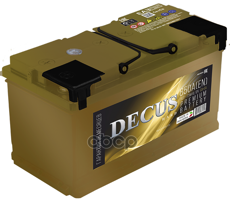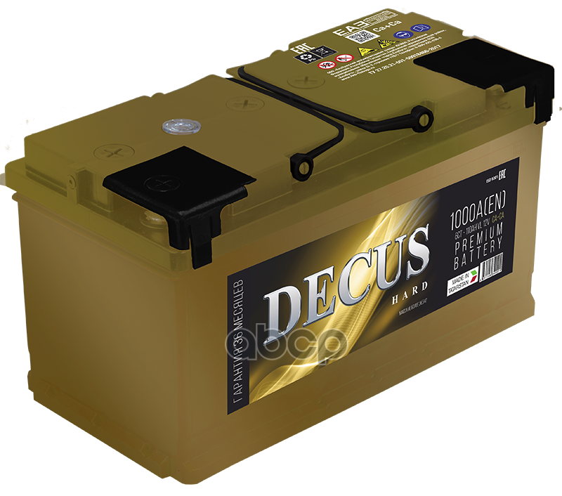 |   DECUS | «DECUS» — премиальный бренд, уверенный пуск, высокая надежность и безопасность с применением современных технологий. «DECUS» — это премиум во всем. Представлен в двух цветовых решениях: Золото и Зеленый металлик. Беспрецедентно высокие показатели тока холодного пуска. Расширенная гарантия 3 года. Мощь, качество, надежность — это кредо премиальной батареи «DECUS». Предназначены для использования на отечественных и зарубежных легковых автомобилях с максимальным пакетом опций. |