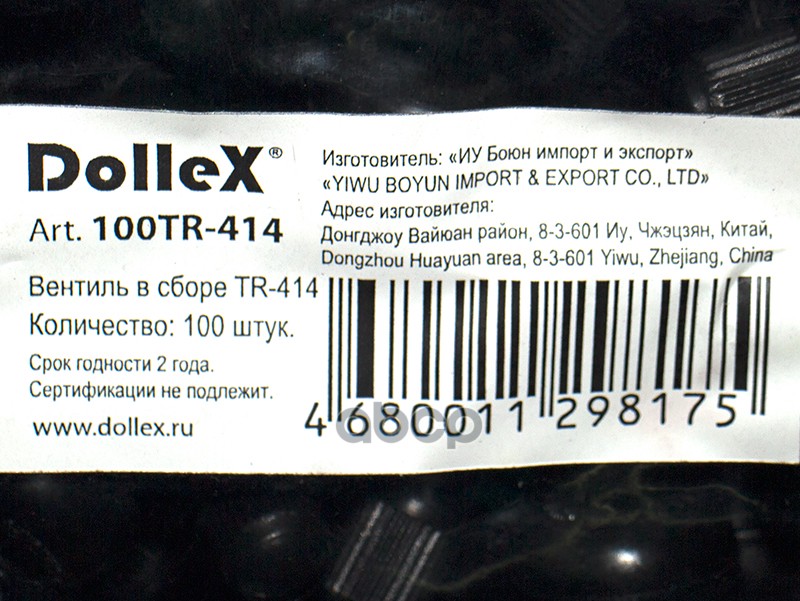 Купить запчасть 100TR414 Сосок (вентиль) бескамерной шины в сборе/ большой TR-414 (уп. 100 шт.) с доставкой по России.