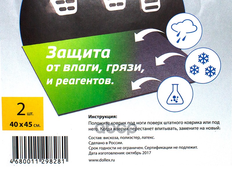 Наименование: КОВРИКИ САЛОНА ВЛАГОВПИТЫВАЮЩИЕ 40 Х 45 СМ К-Т 2